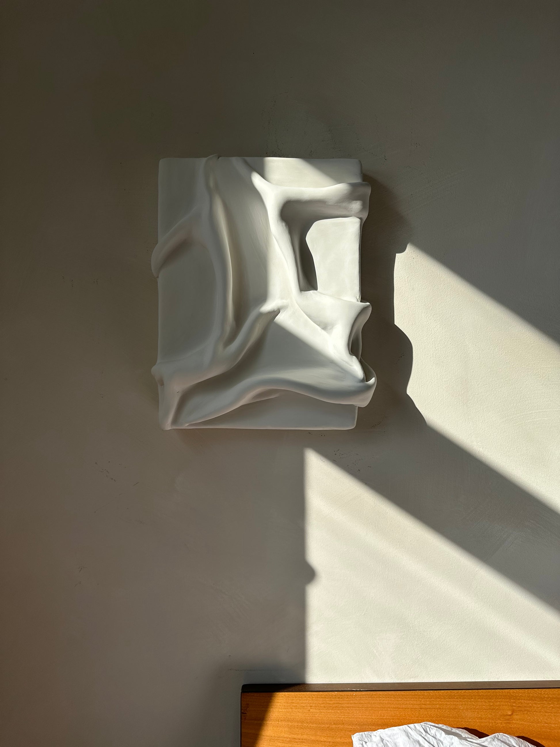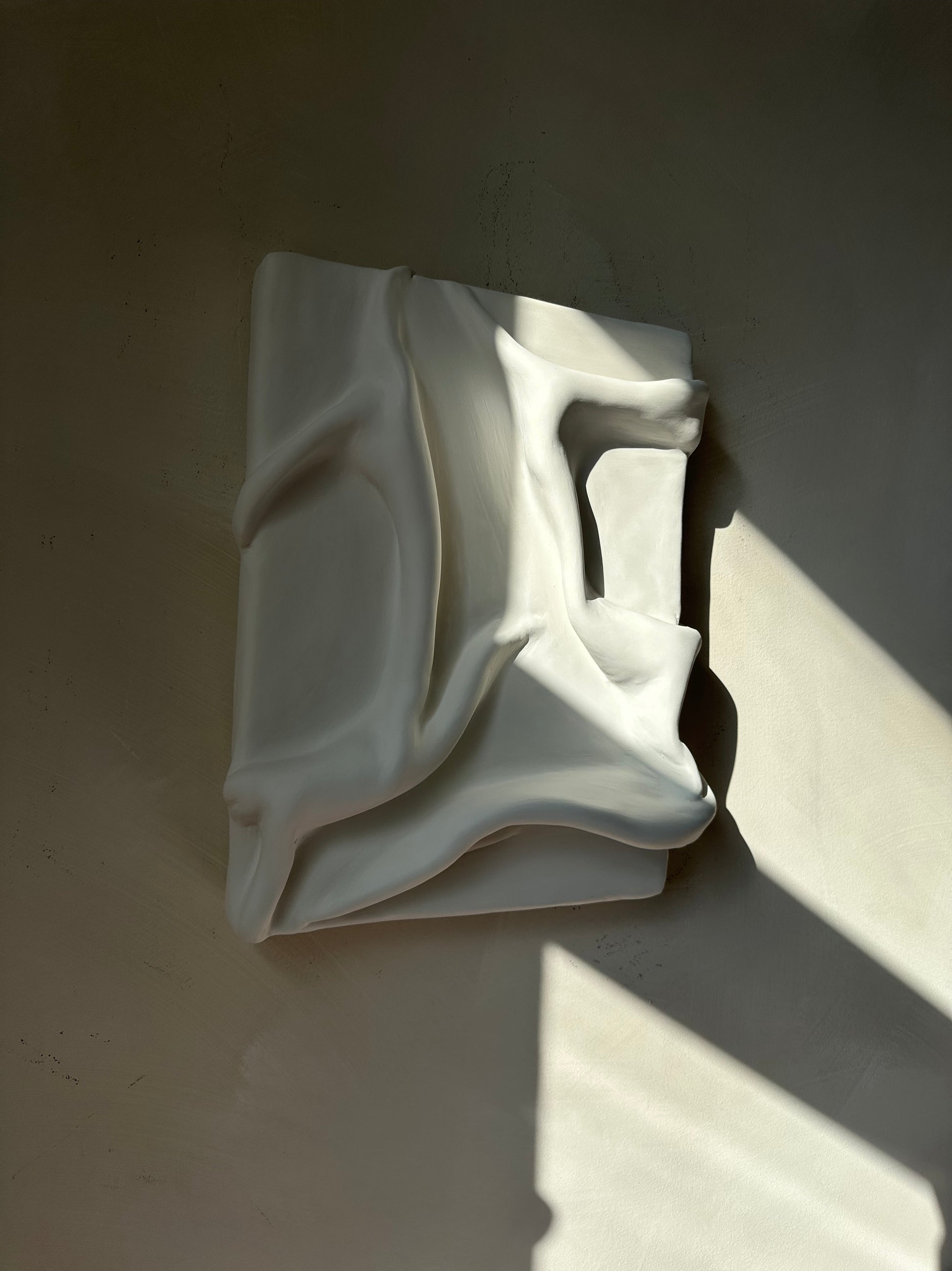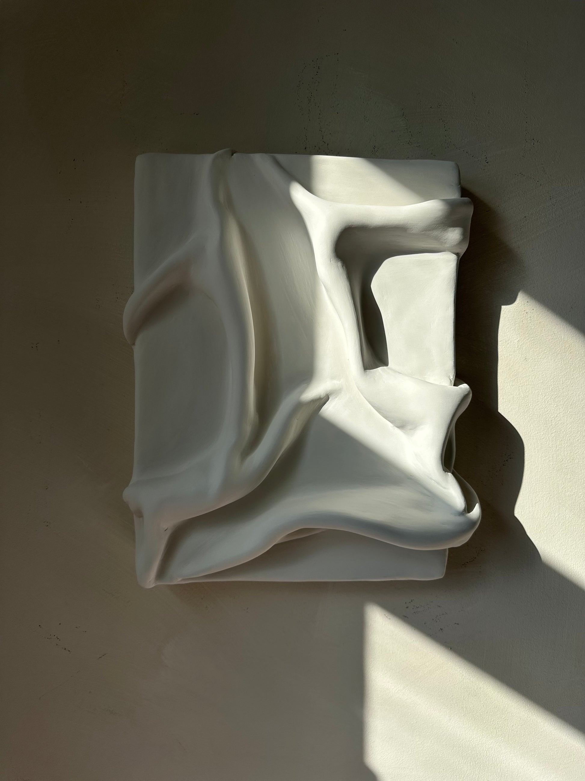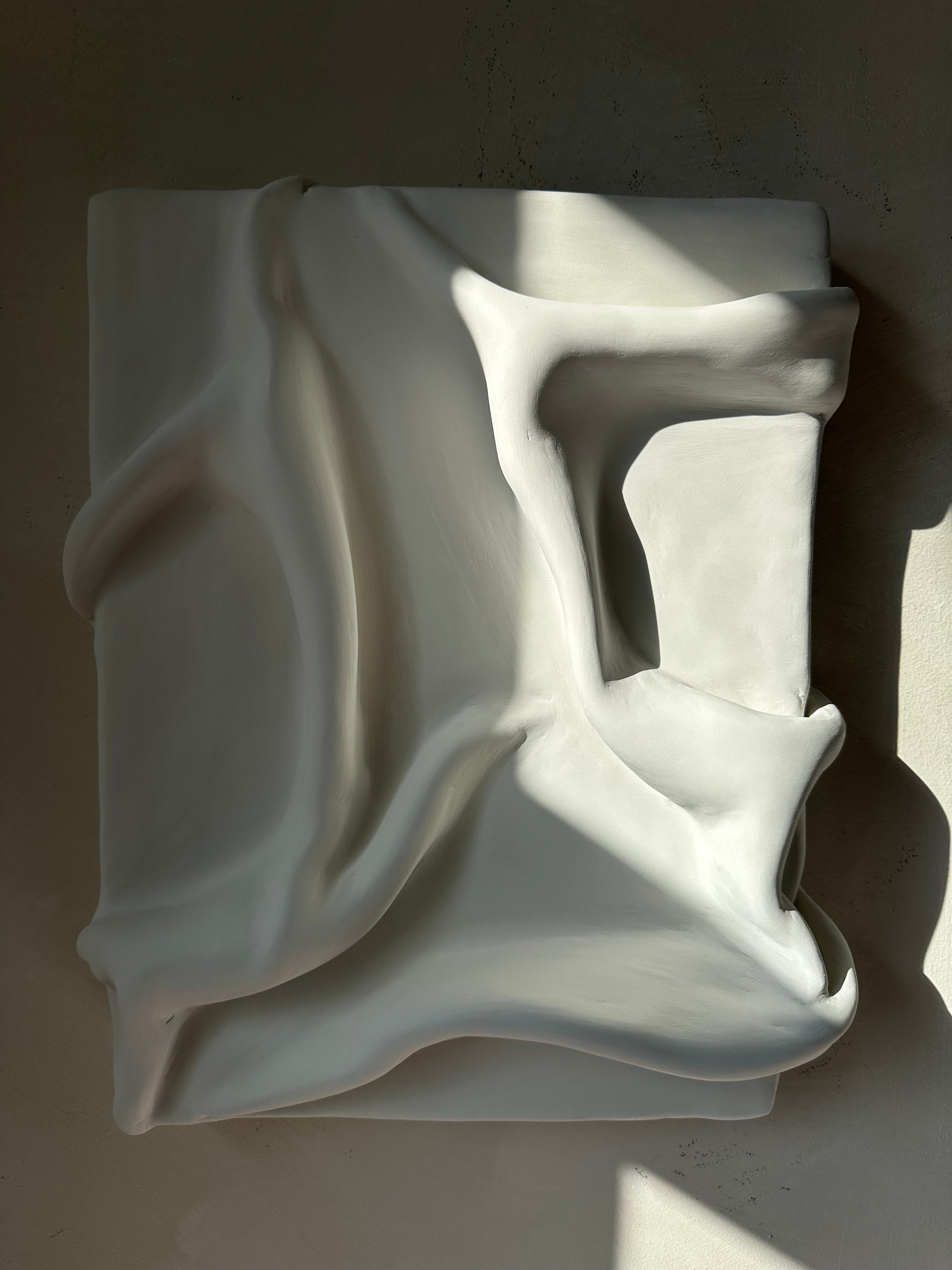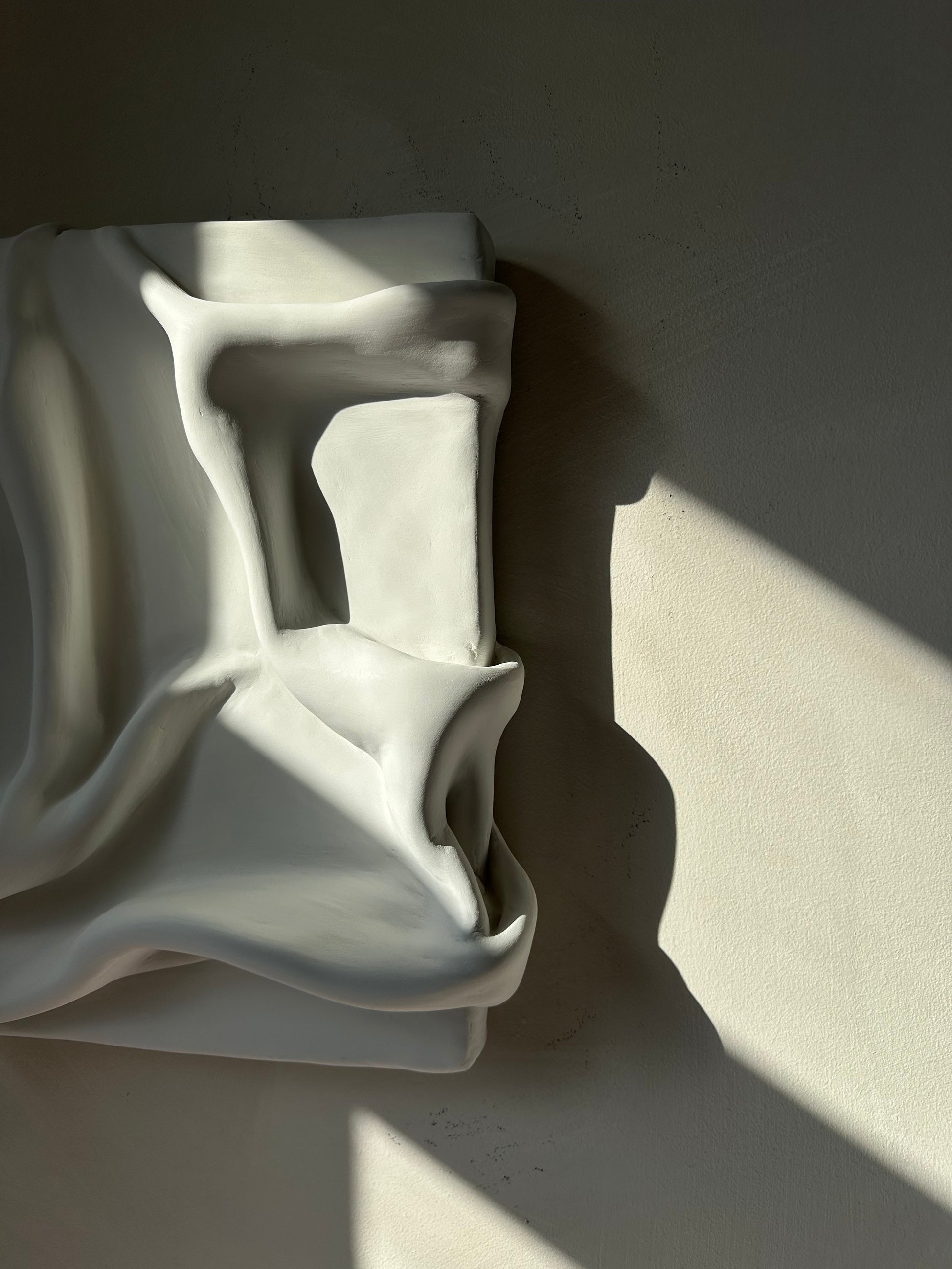 "Means to an End" is a 3D wall sculpture crafted from clay on canvas. This contemporary artwork features flowing formations that induce a sense of movement and tension, suggesting transition, erosion, or intentional unraveling. Ideal for minimalist interiors or collectors of abstract 3D wall art, this clay wall sculpture represents both structure and softness in a single, contemplative form.